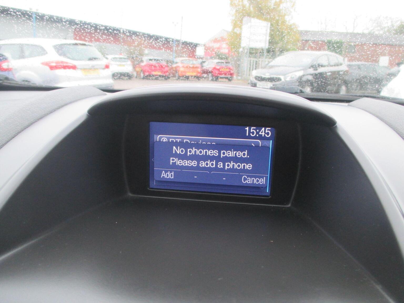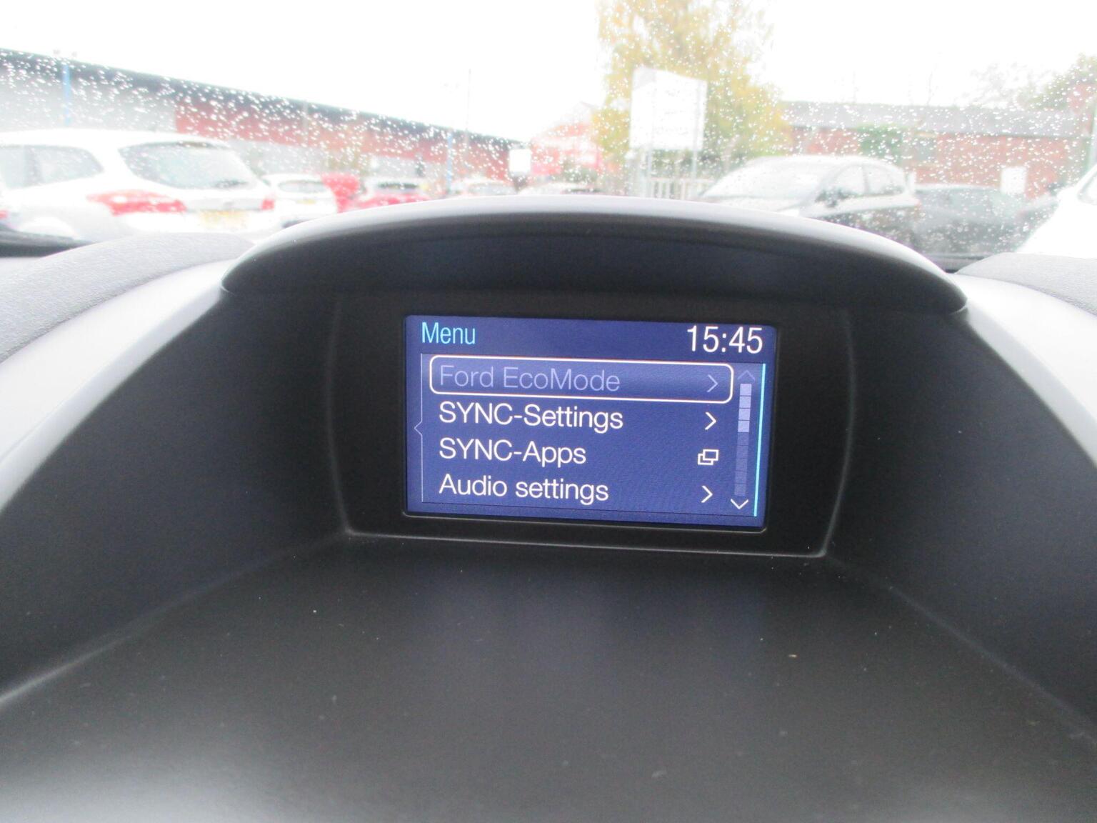 12V Power Socket - Front, 15in Alloy Wheels - 5x2 Spoke, ABS - Anti-lock Braking System, AUX Connection, Aesthetic Lighting Package, Air Conditioning - Manual, Airbags - Curtain, Airbags - Driver Side Knee, Airbags - Front Passenger, Airbags - Head and Thorax, Airbags - Passenger Deactivation, Bluetooth Hands-free Phone, Body Colour Exterior Mirrors, Brake Warning Lights - Automatic Flashing of Brake Lights Under Heavy Braking, Bumpers - Front and Rear - Body Colour, Centre Console - with Trinket Tray - Two Cup Holders, Chrome Belt Line Finisher, Courtesy Light - Overhead with Theatre-Style Dimming, Courtesy Lights with Map Reading Lights, DDS - Deflation Detection System, Daytime Running Lamps, Door Handles - Body Colour, Door Mirrors - Electrically Operated and Heated, Drivers Airbag, EBA - Emergency Brake Assist, EBD - Electronic Brakeforce Distribution, ECOmode, EPAS - Electric Power Assisted Steering, ESP - Electronic Stability Programme, Electric Windows - Front with One Touch Lowering Drivers, Emergency Assistance, Emergency Brake Warning - Automatic Hazard Warning Lights, Engine Immobiliser, Flow Through Centre Console, Ford AM-FM CD Audio System, Ford Easy Fuel Capless Refuelling System with Misfuel Inhibitor, Ford SYNC, Front Fog Lights - Chrome Bezel Rings, Front Lower Grille Insert and Surround - Black, Front Seatback Map Pockets - Driver and Passenger, Front Upper Grille - Chrome Finish Surround, Front Upper Grille Insert - Chrome bars, Gear Knob - Leather, Gearshift Indicator Light, Gearshift Knob - Leather-Trimmed with Chrome Finish Bezel, Glovebox - Illuminated, Head Restraints - 2-way Adjustment, Head Restraints - Rear 2-Way Adjustment, Headlights - Follow Me Home, Headlights - Halogen Projector with Silver Bezel, Headliner - Woven, Heated Front Windscreen, High-Mounted Rear Brake Light, Hill Start Assist, IPS - Intelligent Protection System, Interior Door Lever - Chrome Finish, LED Ambient Courtesy Lighting, Leather-Trimmed Handbrake, Loadspace Compartment Light, Loadspace Floor Carpet, Locking Wheel Nuts, MyKey, Pollen Filter, Rake and Reach Steering Adjustable, Rear Courtesy Lights, Rear Spoiler - Body Colour, Remote Central Locking, Removable Package Tray, Seats - 60-40 Split Folding Back and Fixed Cushion, Seats - Drivers 4-Way Adjustment, Seats - Front Comfort Style, Seats - ISOFIX Mounting Brackets for Child Seats, Speakers - x6, Steering Wheel - 3-Spoke - Leather Trimmed with Bezel, Steering Wheel - Multifunction, Stowage Pockets - Driver and Front Passenger Seatbacks, Tailgate Handle - Body Colour with Chrome Finisher, Tinted Glass, Traction Control - TC, Trip Computer, Tyre Inflator Kit, Tyre Pressure Monitoring System, USB Connection, Voice Control - Audio