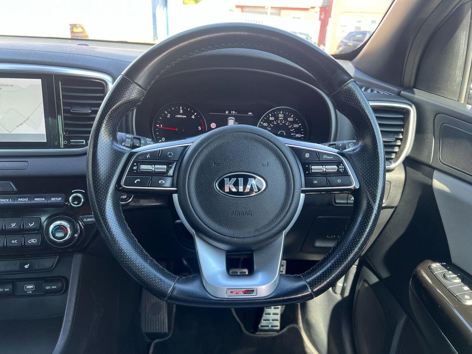 12V Power Sockets - Front and Rear Consoles, 19in Alloy Wheels - GT Line, 3 x Passenger Assist Grips, 4.2in Supervision Colour Cluster Display, 6-Speaker System, 60-40 Split Folding Rear Seats, 8in Touchscreen Satellite Navigation with European Mapping and Traffic Messaging Channel - TMC, Advanced Anti-Theft System including Immobiliser and Alarm, All-Round 3-Point Seatbelts, All-Round Electric Windows with Drivers Auto Up-Down Function, All-Round Height Adjustable Headrests, Aluminium Door Scuff Plates, Aluminium Pedals, Android Auto with Voice Control, Anti-Lock Braking System - ABS with Electronic Brakeforce Distribution - EBD, Apple CarPlay with Voice Control, Auto Dimming Rear-View Mirror, Automatic Light Control, Black Wheel Arch Body Mouldings and Side Sills with Dark Chrome Insert, Bluetooth with Music Streaming, Body Coloured Door Mirrors, Body Coloured Exterior Door Handles with Chrome Insert, Centre Cabin Light, Centre Console Storage Box, Centre Fascia - Black High Gloss, Child Safety Rear Door Locks, Chrome Boot Sill Guard, Chrome Window Surrounds, Coat Hooks - Rear, Cruise Control with Speed Limiter, Cupholders in Rear Armrest, DAB Radio with MP3 Compatibility, Dark Chrome Front Bumper Insert, Dark Chrome Front Grille Surround, Door Deadlocks, Driver Attention Warning - DAW, Driver and Passenger Sunvisors with Vanity Mirror and Illumination, Drivers Seat Manual Height Adjuster, Drivers Seat Power Lumbar Support, Drivers Wide View Door Mirror, Dual Automatic Air Conditioning, EcoDynamics Badge, Electrically Folding-Adjustable and Heated Door Mirrors with LED Indicators, Electronic Stability Control - ESC - with Downhill Brake Control - DBC, Emergency Stop Signalling - ESS, Engine Start-Stop Button with Smart Entry System, Exhaust - Dual, Front Cabin LED Map Light with Sunglasses Case, Front Door Courtesy Reflectors, Front Parking Sensors, Front Passenger Airbag Cut Off Switch, Front Seatback Pockets, Front Seatbelt Height Adjusters, Front Wiper De-Icer, Front and Rear Centre Armrests, Front and Rear Door Storage, Gear Shift Indicator, Glovebox with Illumination, Head Rests - Front Active, Headlights - High Beam Assist - HBA, Headlining - Black, Heated Front and Outer Rear Seats, High Gloss Black Blade Mesh Radiator Grille, Hill-Start Assist Control - HAC, ISOFIX Child Seat Top Tethers and Anchor Fixings, Impact Sensing Auto Door Unlocking, Interior Door Lock-Unlock Function, Kia Connected Services Featuring TomTom - Traffic - Speed Cameras - Local Search and Weather Updates, LED Bi-Function Headlights, LED Daytime Running Lights, LED Ice-Cube Front Fog Lights, LED Rear Tail Lights, Lane Keep Assist System - LKAS, Leather Trimmed Door Armrests, Leather Trimmed Gearshift, Locking Wheel Nuts, Luggage Area Light, Luggage Area Load Cover, Luggage Net Hooks, Privacy Glass - Rear Windows and Tailgate, Rain Sensing Front Wipers, Rear Parking Sensors, Rear Spoiler, Rear USB Charging Port, Rear Ventilation Duct, Reversing Camera System, Roof Rails, Satin Chrome Interior Door Handles, Shark Fin Antenna, Silver Painted Front and Rear Skid Plates, Speed Limit Information Function - SLIF, Speed Sensing Auto Door Locking, Steering Wheel - D-Shaped Sports Leather with Perforated Inserts and GT-Line Logo, Steering Wheel Mounted Audio Controls, TMK - Tyre Mobility Kit, TSA - Trailer Stability Assist, Telematics System with UVO Connect Services, Tilt and Telescopic Steering Wheel Adjustment, Tinted Glass, Trip Computer, Twin Curtain Airbags with Roll-Over Sensor, Twin Front Airbags, Twin Side Airbags - Front, Tyre Pressure Monitoring System - TPMS, USB Port for Connection of a Media Device, Visible Vehicle Identification Number - VIN, Welcome and Follow-Me-Home Light Functionality, Windscreen Washer Level Warning