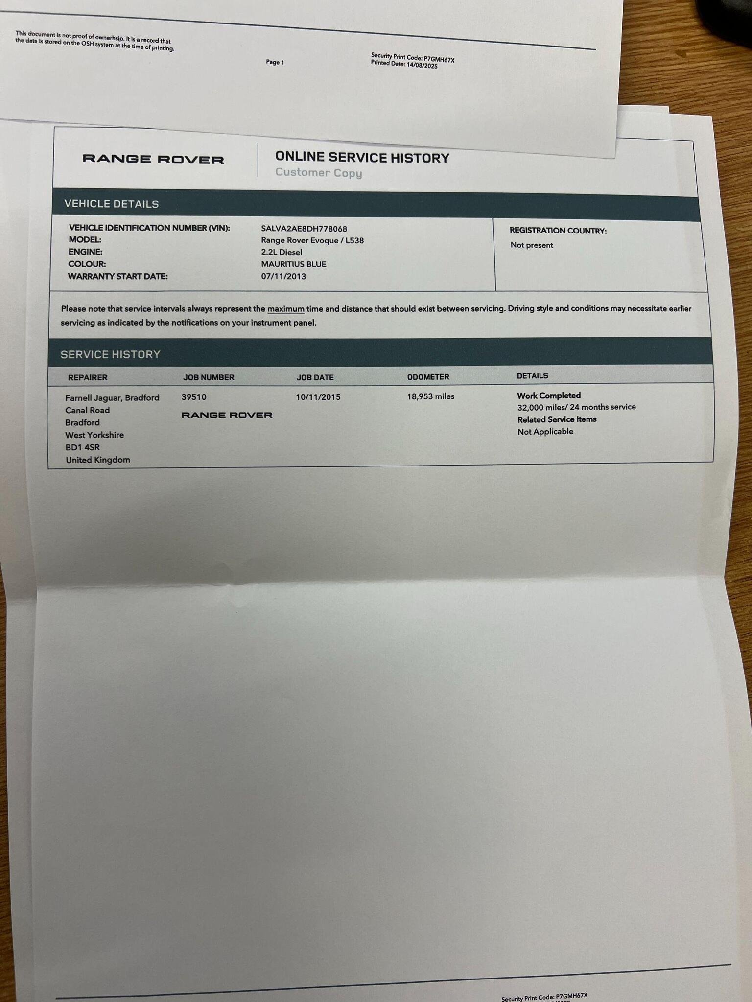 20in Alloy Sport Style 6 - Sparkle Silver, 5in TFT Driver Information Centre, 8/6 Way - Electric driver seat adjustment, 8in High Resolution Touch Screen, ABS - Anti Lock Braking System, Adaptive Dynamics, Airbags - Driver Knee, Airbags - Driver and Passenger Side, Airbags - Full Size Driver, Airbags - Full Size Passenger, Aluminium Pedal Finisher Kit, Armrest - Rear Centre with Storage Compartment and 2 Cupholders, Audio Connectivity System, Audio System - 380 Watt Meridian Sound System with Radio and Single Slot CD, Automatic Headlights, Bluetooth Audio Streaming, Bluetooth Telephone Connectivity, Carpet Mat Set - Front and Rear, Centre console - Covered Storage Compartment, Climate Control - Automatic with Air Filtration, Cruise Control, DSC - Dynamic Stability Control, Digital Audio Broadcast Radio - DAB, Door Mirrors - Electrically Adjustable - Heated and Power Folding with Memory Function, EBA - Emergency Brake Assist, EBD - Electronic Brake-Force Distribution, EDC - Engine Drag Torque Control, EPAS - Electronic Power Assisted Steering, EPB - Electronic Park Brake, Front Fog Lights, Global one-shot open/close windows, HDC - Hill Descent Control, HDD Premium Navigation with Touch Screen, HSA - Hill Start Assist, Hazard Warning Lights Under Heavy Braking, Headlight Power Wash, Headlining - Cirrus Morzine, Heated Front Seats, ISOFIX Child Seat Anchor Points, Illuminated tread plates, Illumination - Footwell, Illumination - Glovebox, Illumination - Load Compartment Light, Illumination - White Lighting in door release and over head console downlighter, Interior Mood Lighting, Land Rover - Tyre Repair System, Leather Steering Wheel, Locking Wheel Nuts, Luggage Compartment - Anchor Points, Luggage Cover, Multi-Function Steering Wheel, Parking Aid - Front, Parking Aid - Rear, Parking Aid - Rear View Camera, Proximity Sensing and Touch Detection For Overhead Map Lights, Push Button Start, RSC - Roll Stability Control, Rain Sensing Windscreen Wipers, Range Rover Smart Key Controls - Remote lock-Unlock-Double Lock-Lights on Tailgate Open, Rear spoiler, Satin brushed aluminium centre console finisher, Seats - 3 Seat Bench in Rear, Seats - 60/40 Split, Seats - Rear Centre Head Restraint, Sun Visors - Illuminated Vanity Mirrors, TCS - Traction Control System, TSA - Trailer Stability Assist, Terrain Response, Textured aluminium centre console finisher and textured aluminium IP finisher, Torque Vectoring, Waist finisher - High Gloss Black, Windows - Heated Rear Windscreen, Windscreen - Heated, Windscreen Washer Jets - Heated, Xenon Headlamps with LED Signature